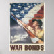 Vintage, poster da Segunda Guerra Mundial, mostrando um soldado acenando uma bandeira americana.