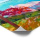 Minha pintura original de óleo é muito maior, então esta é apenas uma seção que eu pensei que combinasse todas as memórias que tenho das Bermudas e fiz para um bom poster de viagens. O incrível mar turquesa, árvores reais de ponciana em flor, brisa mole e, claro, o sonho de todos os artistas — casas cor-de-rosa com obturadores azuis. Um paraíso para lembrar.