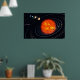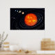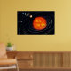 Astronomia gráfica impressionante e dramática Poster de Muro do sistema solar com Sol vermelho e planetas em órbita. Um dom inspirador e único para o espaço temerário para aqueles que sonham com astronautas e exploram os reinos do espaço sideral.