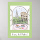 Uma aquarela original adorna esta estampa caprichosa da Torre Eiffel de Paris, PARIS JE T'ADORE (Eu Adoro Você!).