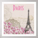 A beautiful vintage poster of the Eiffel tower in front of pink flowers. You can easily personalise it by simply changing the title to anything you would prefer for a special loving or romantic gift.