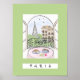Poster de Paris Whimsical e Torre Eiffel "PARIS". Uma Pintura de Aquarela Original enfeita este poster de borda verde. Onde quer que você esteja, mantenha Paris perto com este sorridente desenho pintado à mão de uma manhã sonhadora em Paris, torre Eiffel em vista através de uma bela janela francesa, cheia de cappuccino e um croissant. Perfeito para os francófilos que amam a França e qualquer coisa que o francês inspirou. Paris é sempre uma boa ideia! Ideal para anfitriã/anfitrião ou presente de aniversário ou apenas para ficar contigo para uma viagem de compro.