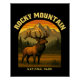 Este design apresenta um alce majestoso em um campo de ouro com picos torrenciais atrás.