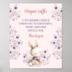 Fralda de Garota Raffle Sinal apresentando uma adorável menina bebebezinha em flores púrpuras e com um texto rosa e roxo no fundo da rosa claro. Perfeito para um chá de fraldas encantador de primavera. Personalize facilmente o texto, se necessário - Kate Eden Art