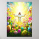 Cena de ressurreição da Páscoa de Jesus. Ele está levantado. Arte religiosa de ovo de Páscoa colorida.