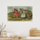 Poster Páscoa Saudação Meninas Segurando Ovos