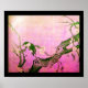 Pôster Pássaro de PRIMAVERA e árvore florida Rosa Fuchsia
