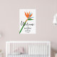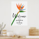 Um pássaro tropical de uma flor de cor d'água do paraíso com Bem-vindo e seus detalhes de casamento em letras quentes acenam esta poster, mudam para qualquer tamanho. Encomende como INSTANTÂNEO INSTANTÂNEO ou IMPRESSO mais itens CORRESPONDENTES e mais cores na nossa coleção.