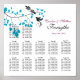 Este gráfico de assentos de mesa apresenta dois pássaros com sotaques azuis e um galho de árvore com folhas azuis correspondentes.