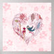 Pássaros giros e bonitos com a chave do caixão amoroso flores do coração pingos folhas flores verdes azuis vermelhos grunge corações cor-de-rosa macio imagem de fundo