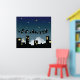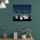 Pássaros em um arame com uma paisagem urbana no fundo sob um céu estrelado. Esta design parece realmente eficaz nestes Poster