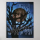Esse desenho digitalizado, gráfico, retrata uma árvore fantasmagórica, de aspecto cinzento, com membros em forma de garra, esticada em direção a, uma sombra, de cor de bronze, lua com pássaros Raven, empoleirada, entre os galhos, exibida com saudação gótica, contra um céu azul e azul-da-noite.