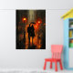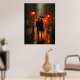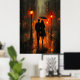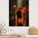 Poster Passeio Romântico sob a Chuva em Tons de Carvão