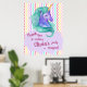 Magical Gentil Pastel Chevron Obrigado Poster de Aniversário do Unicórn. O design tem um fundo de cromo pastel com um unicórnio verde azul giro e um obrigado personalizado. Uma maneira bonita e bonita de dar as boas vindas aos convidados a uma Festa de aniversário de unicórnios fofa. Para mais personalizações, contacte-me em mypaperlove2021@gmail.com