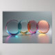 Traga um toque de elegância moderna para o seu espaço com esta poster impressionante com três esferas de vidro vibrantes. O design abstrato e a superfície refletora criam um visual cativante que irá adicionar um talento único a qualquer sala. Este poster é perfeito para: Espaços residenciais temporários de escritório Colecionadores de arte