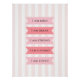 Um design bonitinho, feminino, com afirmações de amor próprio "Eu sou gentil, sou corajoso, sou forte, sou capaz, sou amado" em um fundo pastel rosa e listrado branco. Ideal para o berçário, escritório, quarto ou decoração do dormitório da menina.
