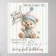Pastel Teddy Bear Beary First Birthday Welcome Poster