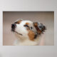Poster com uma imagem fotográfica, de um lindo filhote de pastor australiano.