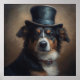 pintura de um lindo cão-esférico australiano vestindo um chapéu preto e uma coleira, pronto para uma despedida de solteiro