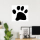 Simples ilustração gráfica preta sólida de uma impressão de pata de cão ou gato. Imagem disponível em vários presentes e produtos.
