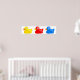 Figura de desenho animado bonito de três patos coloridos diferentes flutuando juntos em fileira. Imagem disponível em vários presentes e produtos.
