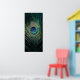 A luz brilha da pena de pavão escura nesta fotografia de vida estática. O fundo verde escuro faz com que o olho da pena de peruca pareça espantoso.