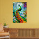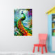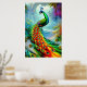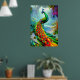 Pavão impressionante com penas esplêndidas da cauda - original de Ricaso. Pássaro de pavão em cores vermelha, verde, laranja e púrpura muralha / poster / impressão