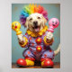 Say hello to Boop the Clown—a Labrador whose full-time job is happiness. Decked out in a rainbow wig, oversized shoes, and a polka-dot jumpsuit, he’s busy twisting balloon animals and giving side-eye giggles. His goofy grin and wiggly tail are his secret comedic weapons. Whether for a child’s playroom or a dog-lover’s den, this poster delivers pawsitive vibes and clown-level charm without the creepy. One look and you’ll want to boop that nose.