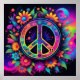 Esta vibrante e psicodélica trabalho de arte digital celebra o espírito da paz e do amor. Um símbolo de paz colorido toma palco central, cercado por um motim de flores florescentes num caleidoscópio de matizes. Os detalhes intrincados e as cores ousadas criam uma experiência visual cativante que evoca a energia e o otimismo da contracultura dos anos 1960.