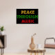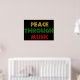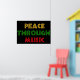 Letras amarelas, verdes e vermelhas soletram "Paz Através da Música". Mensagem antiguerra excelente para se espalhar na língua universal que é a música. Afinal de contas, foi o Rock and Roll que derrubou o muro e não políticos mesquinhos.