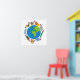 Uma ilustração original e simples de desenho animado de muitos animais selvagens de desenho animado fofos e amigáveis e corações vermelhos ao redor do mundo em um círculo simbolizando paz, amor e harmonia.