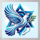 Esta peça impressionante apresenta uma pomba graciosa em voo de médio, suas asas se espalham e um vibrante galho verde de oliveira, delicadamente simbolizando a esperança. A pomba, renderizada em tons brancos suaves, contrasta lindamente com o pano de fundo de uma estrela azul e ousada de David, que captura o olho e o coração com sua profundidade e significado.