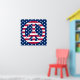 Sinal de paz listrado vermelho e branco sobre fundo azul com estrelas brancas.