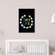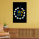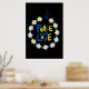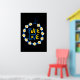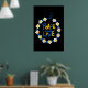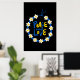 Show your support for Ukraine with this modern poster design featuring a white flower wreath that has "Peace and Love" text in blue and yellow Ukraine flag colors on black background.