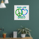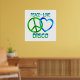 Amantes da Disco podem compartilhar seus sentimentos com este divertido design com um sinal de paz, coração e as palavras - Peace Love Disco.