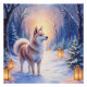 Pôster Peaceful Akita on Snow Lantern Path Christmas Dog