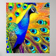 Um pavão majestoso exibe suas penas vibrantes neste trabalho de arte colorido. Descubra esta cena incrível de pássaros, perfeita para amantes de arte! (Esta Design Feita Com IA). Faça a ordem hoje e encare a alegria de Comprar!