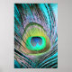 Uma bela imagem de Pavão Pena sobre um impressionante fundo azul azul-turquesa. O fundo de turquesa certamente mostra o olho azul da Peste Pavão. Fotografia de Travis L. Lagasse no Flowstone Graphics.