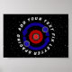 Esta é uma trabalho de arte do esporte de inverno, Curling. As pedras azuis estão se curvando ao redor de uma pedra vermelha como a órbita da terra.