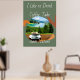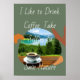 Eleve a decoração da sua casa com uma impressão premium em grande tela de uma xícara de café fumegante contra um belo cenário natural com o texto "Eu gosto de beber café, tirar selfies e salvar a natureza".