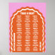 Nosso símbolo de assento de casamento, estilo retrógrado, mínimo e ousado é perfeito para o casal da moda que ama se destacar e fazer uma declaração ousada. Nosso design apresenta uma combinação de cores rosa-laranja-forte e brilhante. Formas simples de arco ondulado e círculo de abstrato criam uma aparência em negrito com "assento" exibido ousadamente em letras grandes e brancas.