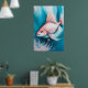 Poster Peixe de desenho do giz azul cor-de-rosa V
