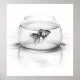 Poster Peixes dourados em tigela e água Arte de desenho d