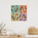 Padrão de penas de várias dimensões decoradas em padrões tribais. Padrão em cada um dos quatro quadrados - laranja, turquesa, bronzeado e roxo