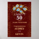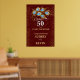 Burgundy elegante e convite para o 50º aniversário de casamento, com anel de ouro e penas de pavão, mude todo o texto para qualquer aniversário ou ocasião. Este sinal será facilmente convertido para os tamanhos de 20 x 30 ou 24 x 36 polegadas.