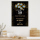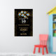 O elegante convite para o aniversário de 50 anos de casamento em preto e ouro com anel de ouro e penas de pavão, mude todo o texto você mesmo para qualquer aniversário ou ocasião. Este sinal será facilmente convertido para os tamanhos de 20 x 30 ou 24 x 36 polegadas.