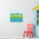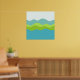 Um design constituído por formas irregulares de onda ou colina dispostas como uma paisagem com progressão de bandas, uma atrás ou sobre outra brincando abstratamente com cor e espaço. A design também lembra muito o som e a música com as formas da onda e harmonizando as cores.