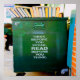 Pense antes de falar. LEIA antes de pensar. Palavras sábias para viver pintadas em uma lixeira verde com livros em cima. Este é um ditado divertido e um presente de excelente para qualquer um que precise de alguma inspiração na vida ou que ame ler.