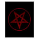 Pentagrama vermelho, invertido, texturizado em círculo, sobre fundo preto. Símbolo oculto. 666
