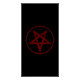 Pentagrama vermelho, invertido, texturizado em círculo, sobre fundo preto. Símbolo oculto. 666